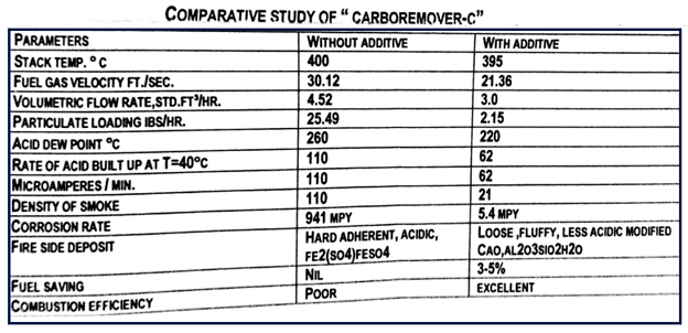 - The boiler efficiency even after one year of use, remain 90% while without addition of CARBOREMOVER-O, it falls to 60% from the initial 90% .